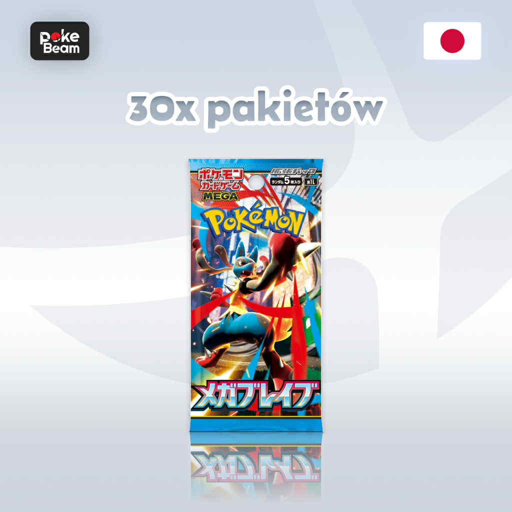 Mega Brave – najnowszy dodatek z japońskiej edycji Mega Series. W środku masz szansę trafić unikalne karty dedykowane tylko dla tego zestawu: Mega Ewolucje: Mega Lucario ex i Mega Venusaur ex, Art Rare: Riolu, Vulpix, Bulbasaur, Ivysaur, Super Rare: Night Stretcher, Full Art: Lillie's Determination